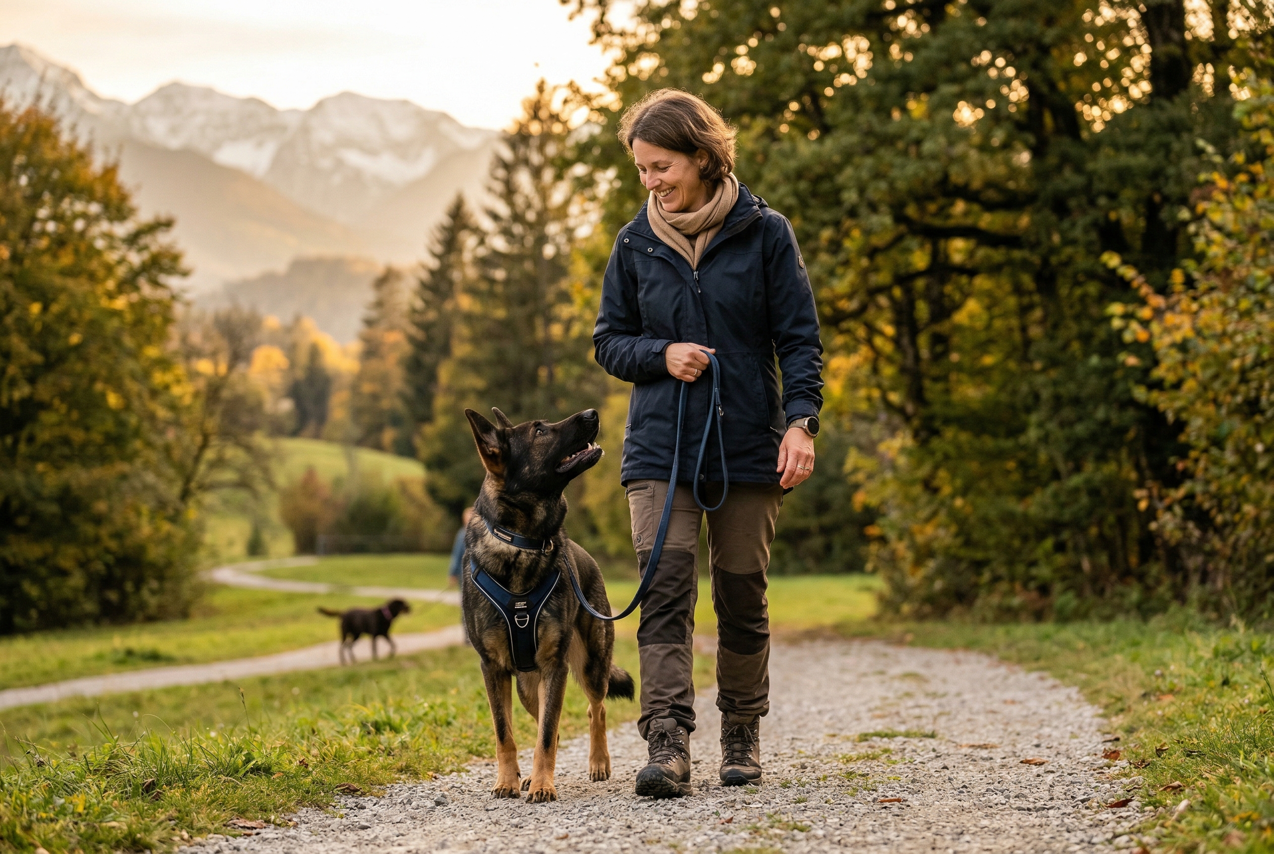 Für das aktive Training empfehlen wir Techniken wie BAT 3.0 nach Grisha Stewart oder das „Look-At-That“-Spiel, bei dem der Hund lernt, Auslöser ruhig zu betrachten, anstatt sofort zu explodieren. Ein U-Turn ist zudem eine hervorragende Notfall-Strategie: Drehe dich einfach zügig um und gehe in die andere Richtung, wenn die Situation zu kippen droht. Nutze dabei eine Schleppleine als Sicherheit, um deinem Hund trotz Training den nötigen Freiraum zu geben. So bleibt die Leine locker und dein eigener Stresspegel sinkt spürbar.